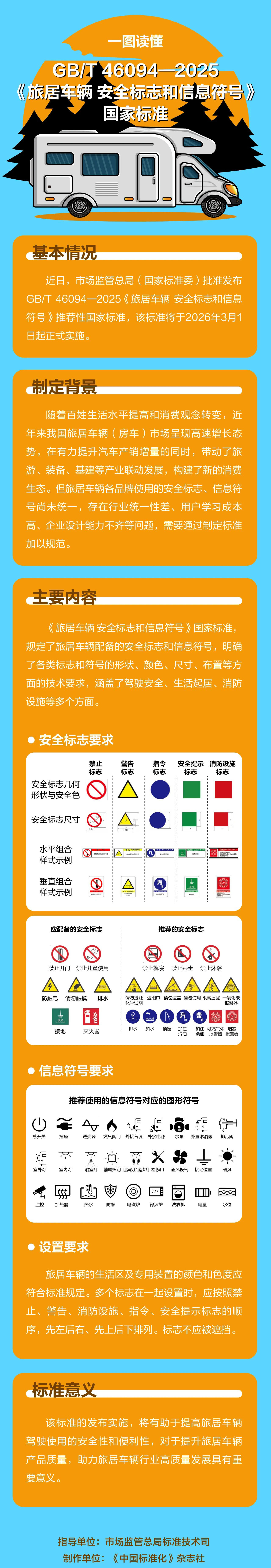 近日配资门户网官网网址,市场监管总局(国家标准委)批准发布《旅居车辆 安全标志和信息符号》(GB/T 46094—2025)推荐性国家标准,该标准将于2026年3月1日起正式实施。